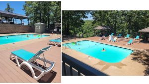 – Access to resort amenities including: Two resort swimming pools, 5 hiking trails (one of the trails leads to a multi-acre catch and release lake), basketball court, horseshoes, and playground.