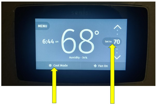Left: Touch here to change between Heat and Cool