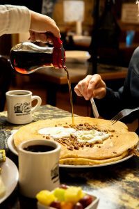 - Breakfast: Steamy Joe’s Cafe has an amazing view of the mountains and The Strip, only 5 minutes away. Specializes in breakfast, homemade baked goods and desserts, and a variety of coffee. Pro tip: when you walk inside the cafe, before the main counter on the left, there is a whiteboard with the daily specials on it. Sometimes they include a drink and meal for a very low cost, so it’s always worth checking. Throughout the week, it is common to see the performers there as this is the hang-out spot for much of the talent in Branson.